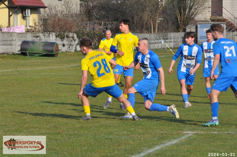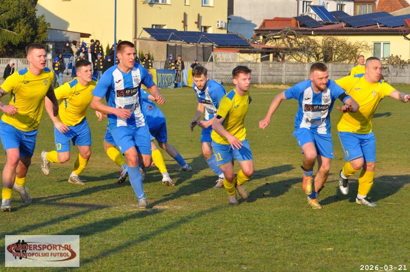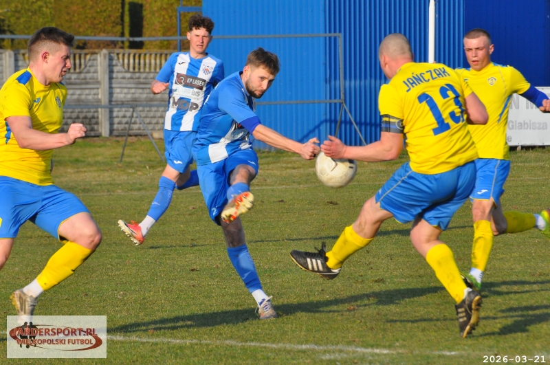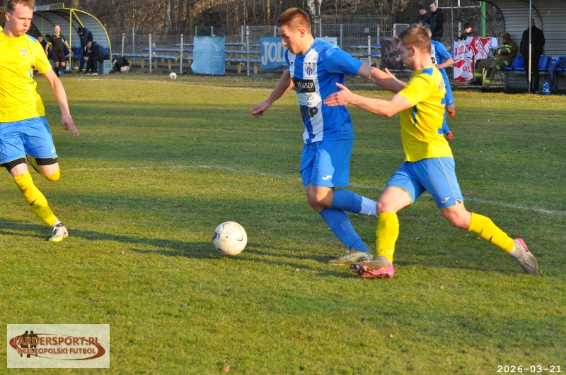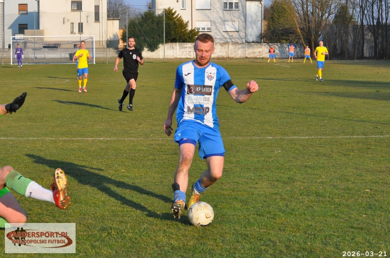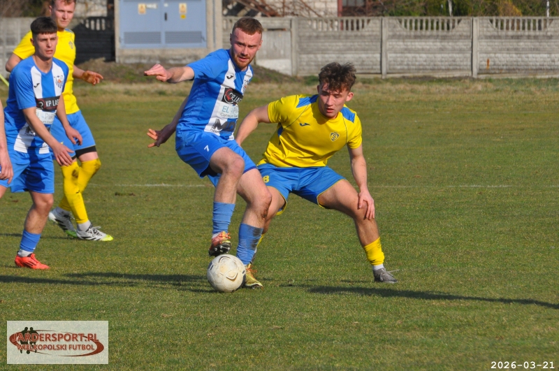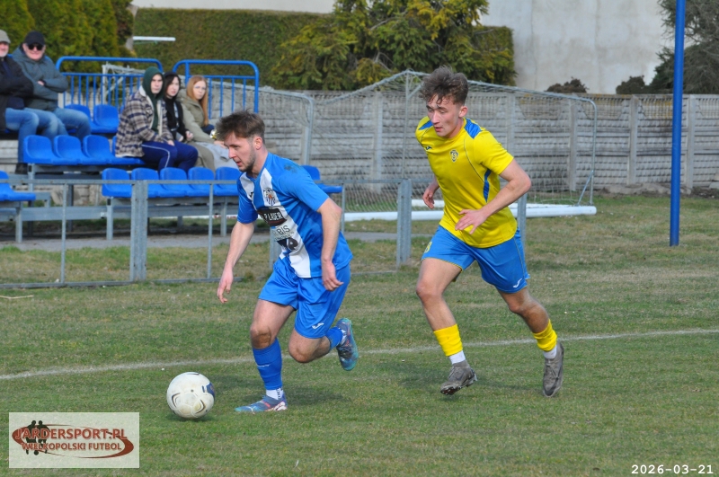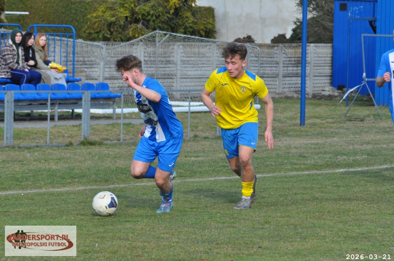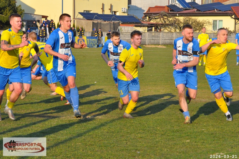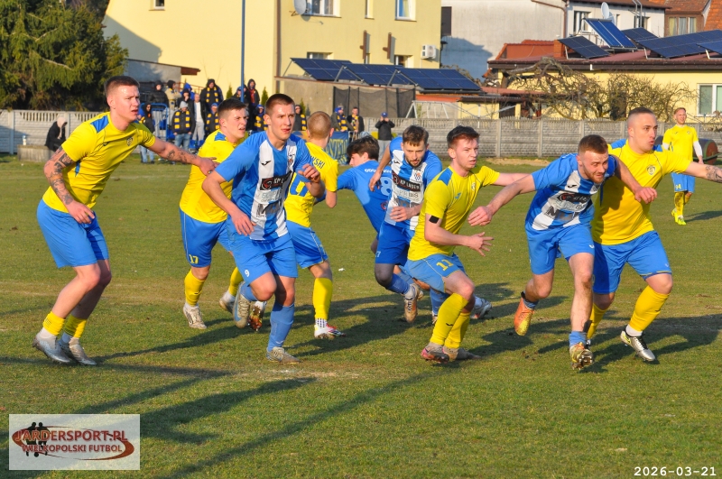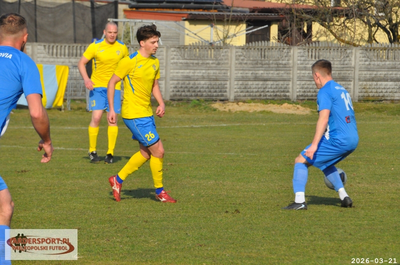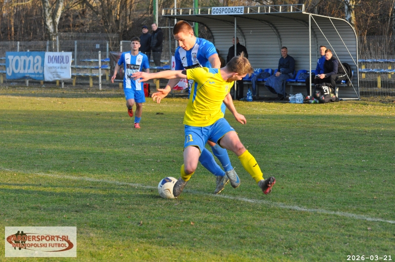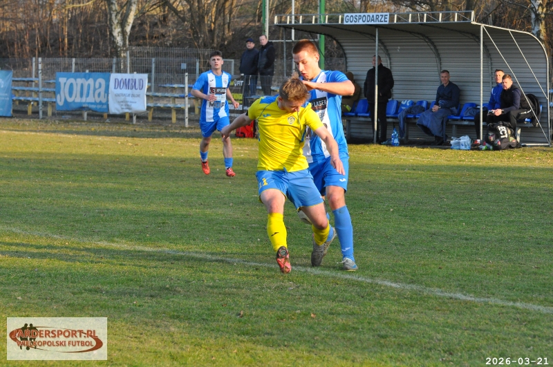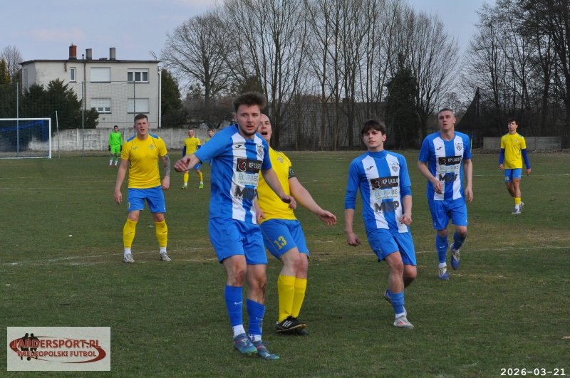 Pierwsza połowa upłynęła pod znakiem walki w środku pola. Nasz zespół dobrze funkcjonował w organizacji gry, jednak miał trudności z tworzeniem klarownych sytuacji pod bramką rywala. Skuteczniejsi okazali się gospodarze, którzy po stałym fragmencie gry objęli prowadzenie – po rzucie rożnym piłkę do siatki skierował Jakub Kraska.